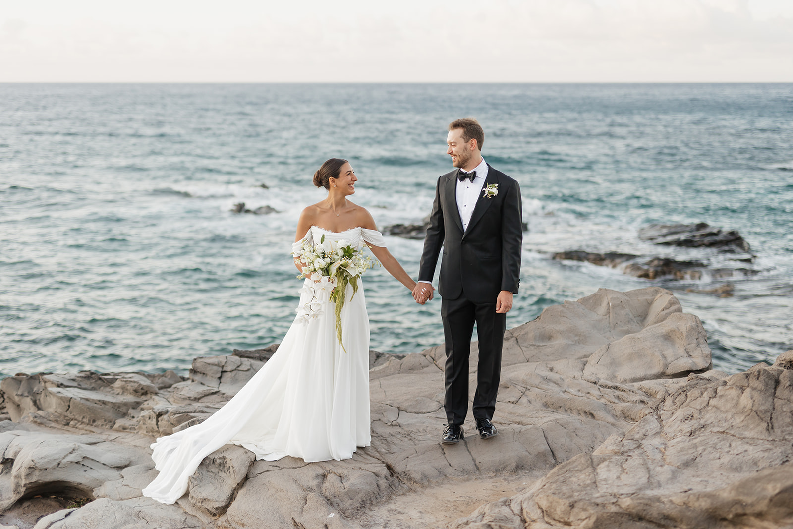 Roam Elopements, Maui Elopements, Zoe and Jean-Sebastien elopement on Wailea beach with ocean waves in background
